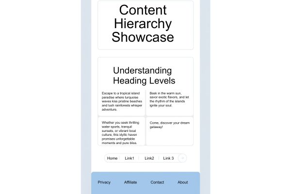 Your website should feel like a story—one where readers can skim and still get the main idea. That’s where visual hierarchy comes in. Use bigger fonts for headings, medium ones for subheadings, and regular size for paragraphs. Don’t be afraid to make key points bold or use blocks of color to separate sections.